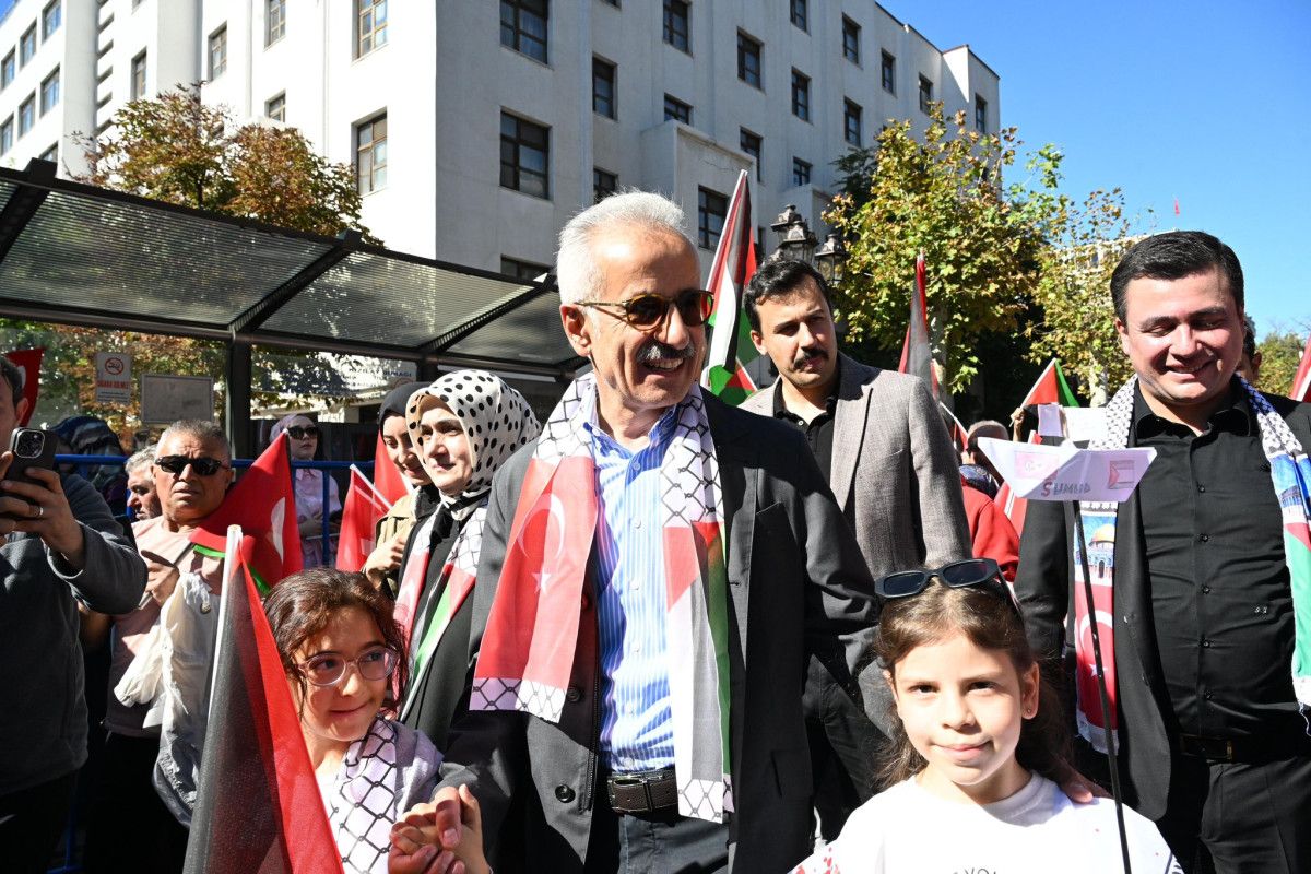 Ulaştırma ve Altyapı Bakanı Abdulkadir Uraloğlu, Ankara Filistin Dayanışma Platformu (ANFİDAP) üyeleri tarafından düzenlenen ‘Gazze Kararlılık Yürüyüşü’ne katıldı.