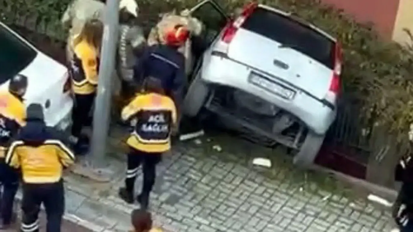 Yaşlı sürücü, dar sokakta manevra yaparken aniden panikleyerek frene basmak yerine gaz pedalına basınca korkunç bir kaza meydana geldi. Araç kontrolden çıkarak sokak üzerindeki bir binanın çevre duvarını aşarak bahçeye düştü. Aracın içinde sıkışan sürücü İ.K. metrelerce yükseklikten aşağıya düştü.
