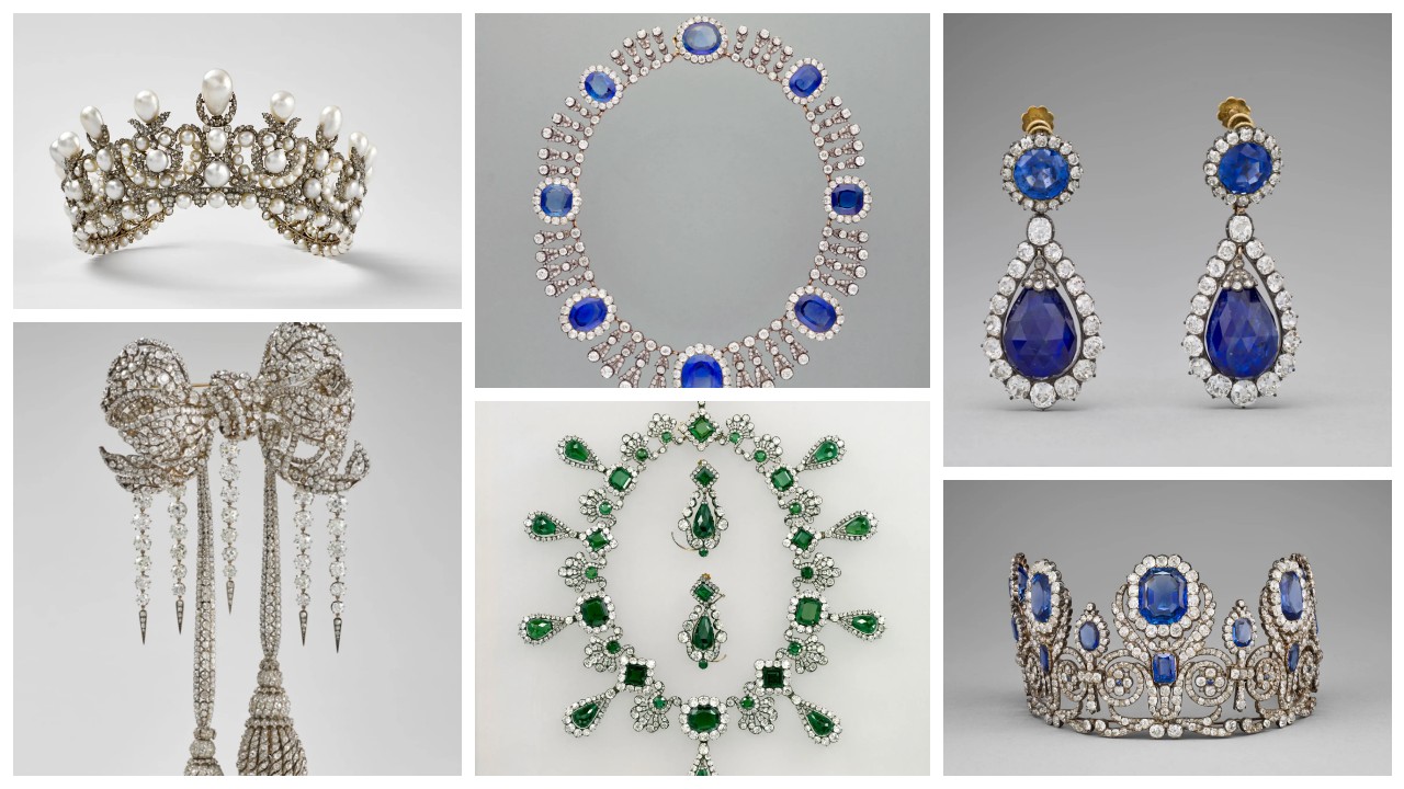 – Kraliçe Marie-Amelie ve Kraliçe Hortense’e ait safir setinden bir taç, kolye ve tek bir küpe