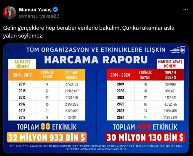 dedi. Ancak Ankara Büyükşehir Belediyesi’nin 2019 yılına ait ihale kayıtları incelendiğinde gerçek tutarın bunun