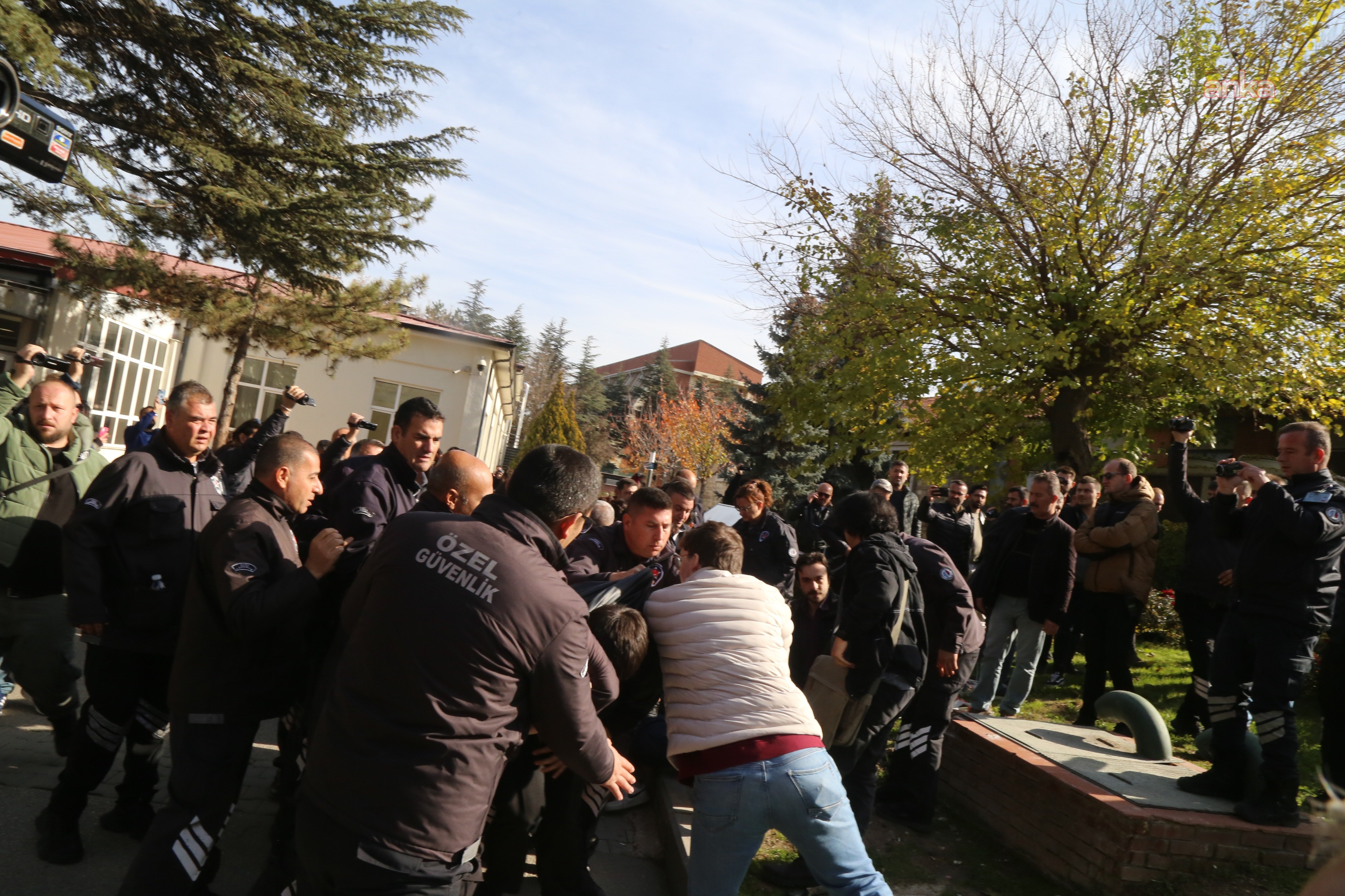 Özel güvenlik, öğrencilere yine müdahale etti. Özel güvenlik, öğrencileri yaka paça kampüs içinden dışarı çıkardı. Öğrencileri kollarından ve bacaklarından çekiştiren güvenlik görevlileri ile öğrenciler arasında arbede yaşandı.